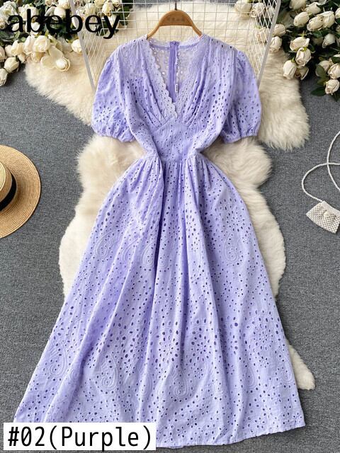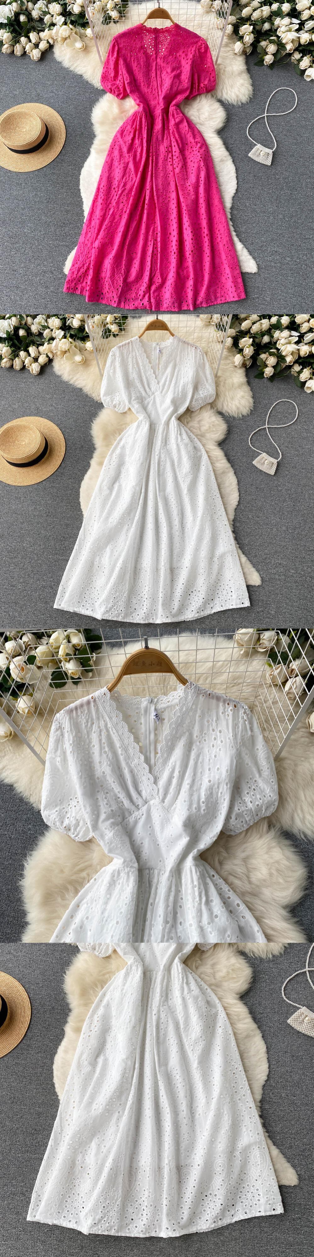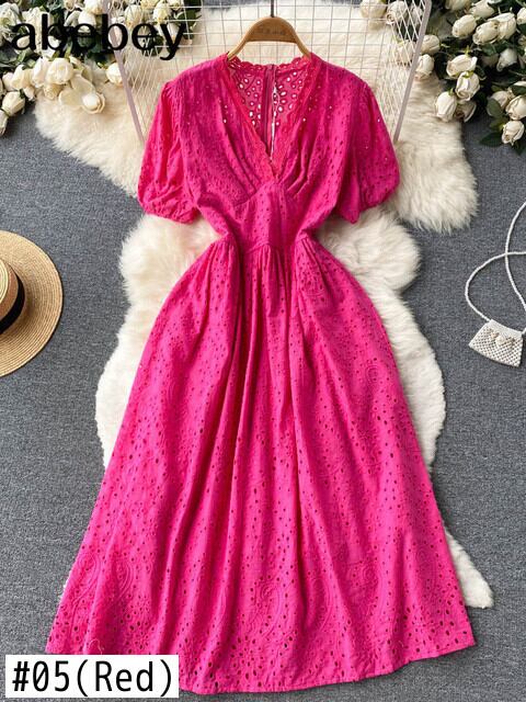 ホワイト/グリーン/ピンク2022サマーレース刺繡ドレス女性半袖ドレスパーティービーチマキシロングドレス ショート ハーフスリーブ 刺繍 夏物 Abe64656496492