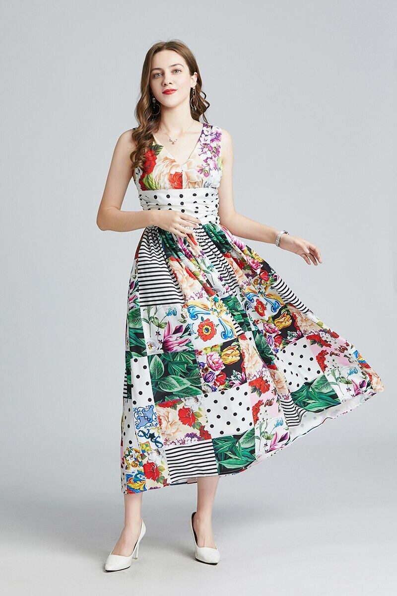 2021年夏休みミディドレスレディースVネックマルチカラーフローラルプリントペプラムパーティードレス サマー 夏物 花柄 Rhc26788263252