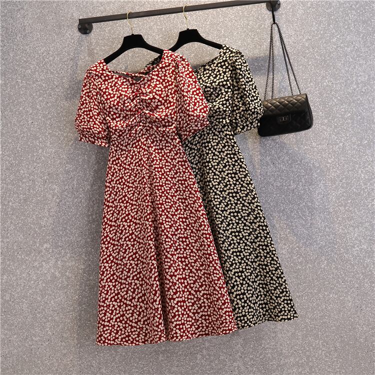 レディースドレス2021夏フレンチスウィート気質パフスリーブVネックウエストジェントルフローラルシフォンドレスVestido 大人ガーリー キュート カジュアル サマー 夏物 花柄 Rhc63810316613
