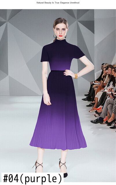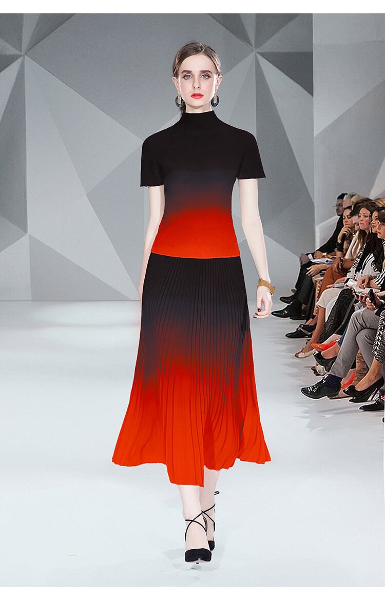 レディーススーツスカートサマーグラディエントスマッジネック半袖ストレッチシャツ+ウエストハーフボディプリーツスカートツーピースセット ショート ハーフスリーブ 夏物 Rhc38782967048