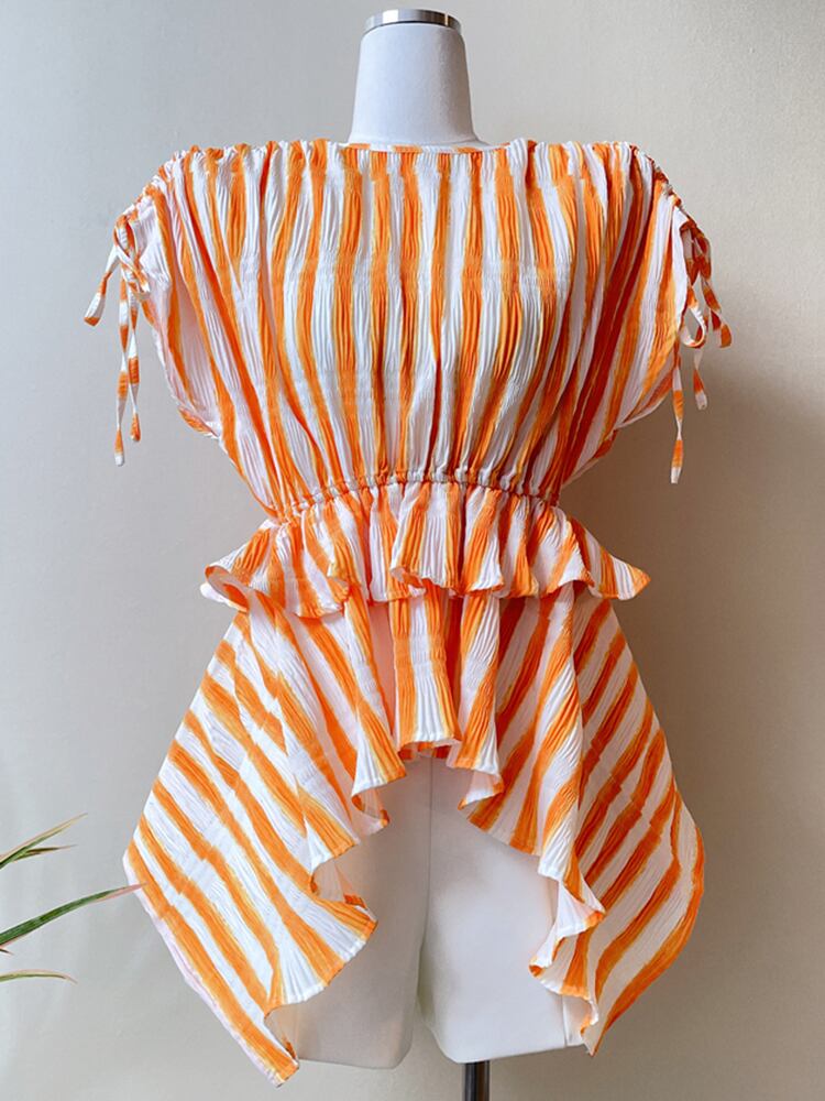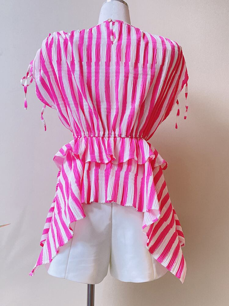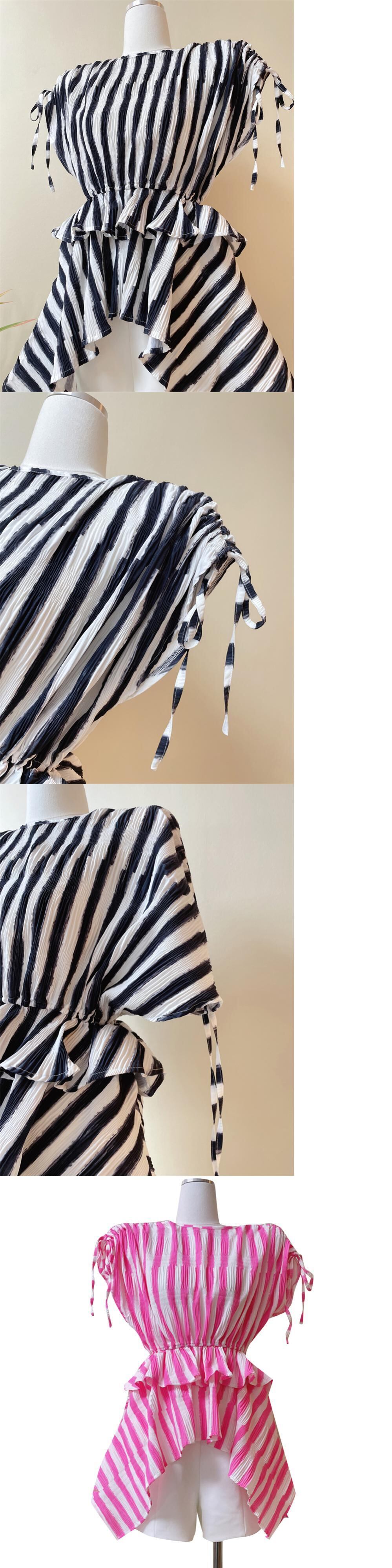 ストライプスリムシャツ女性ラウンドネックノースリーブカラーブロック女性ブラウス2022夏のスタイル サマー 夏物 Oネック Abe69781194767