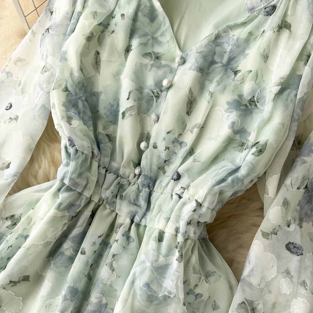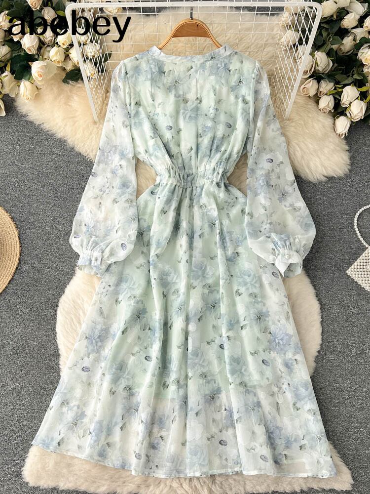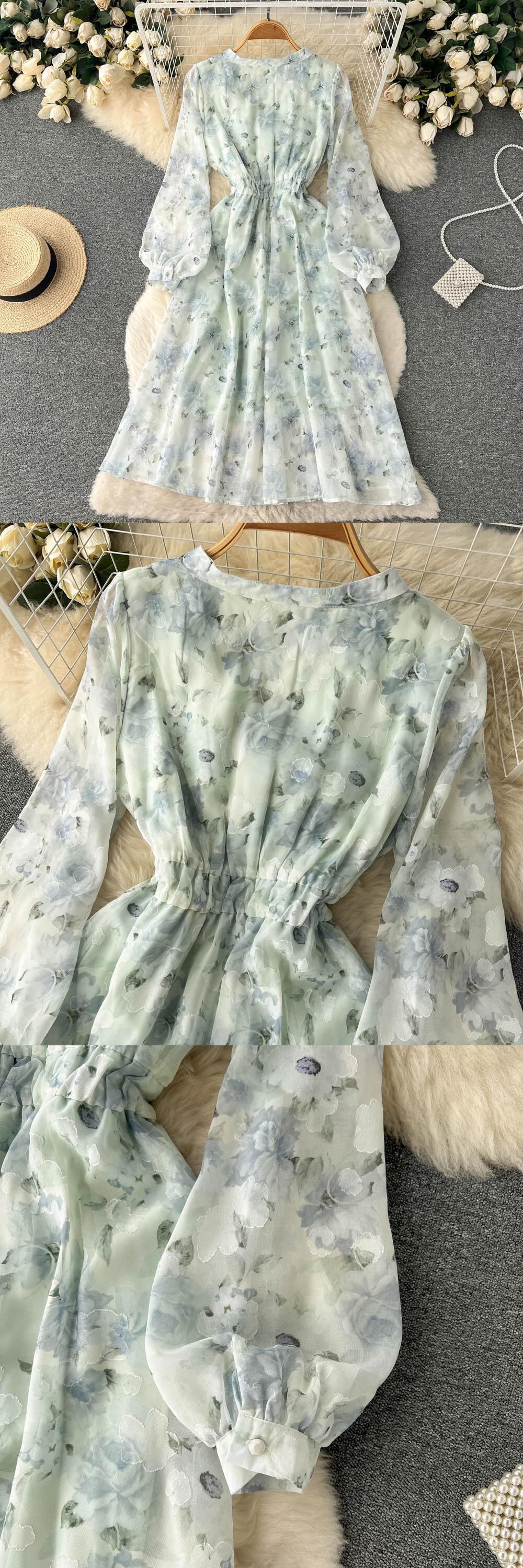 グリーンアシンメトリーミディドレスチュニックウエストセクシーVネックランタン長袖グリーンドレスレディース ロング Abe43729334495