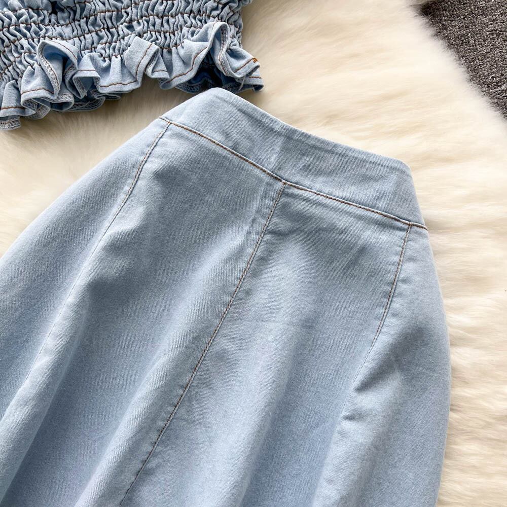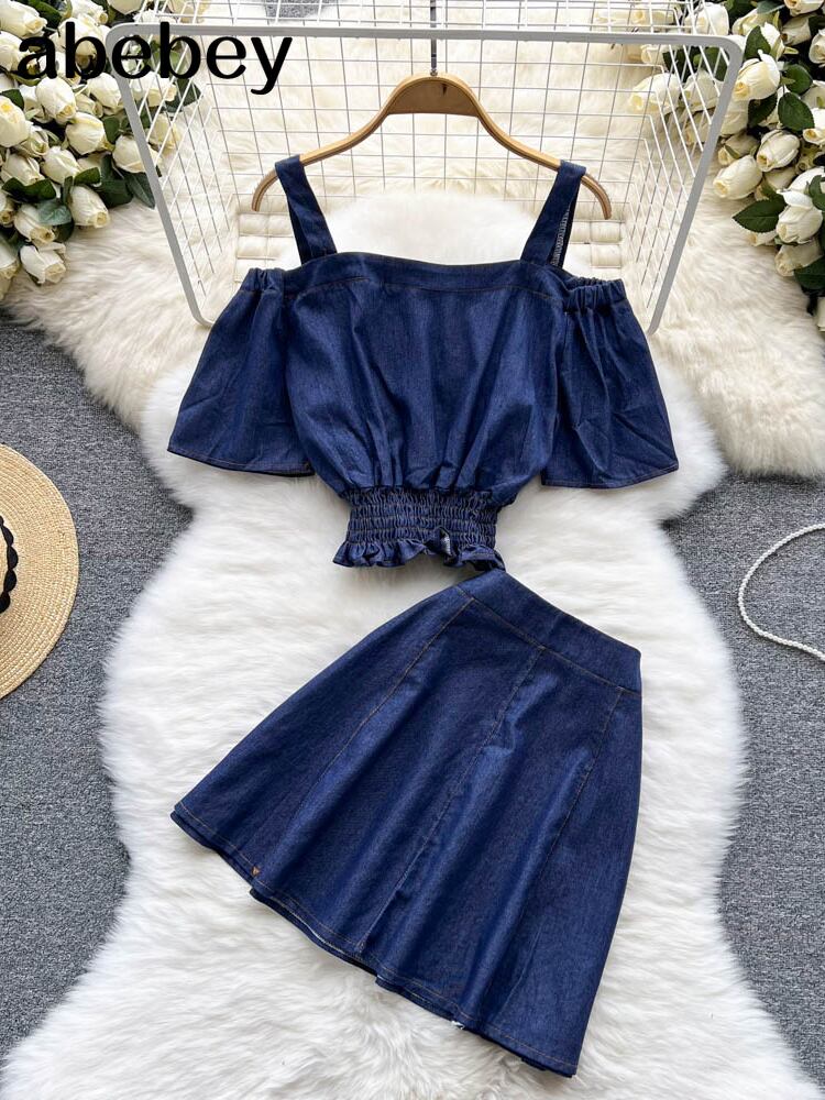 サマーストリートウェアデニム22ピースセットスカートレディースボタンクロップトップミニスカートショートマッチングセット2022衣装 夏物 Abe45961087816