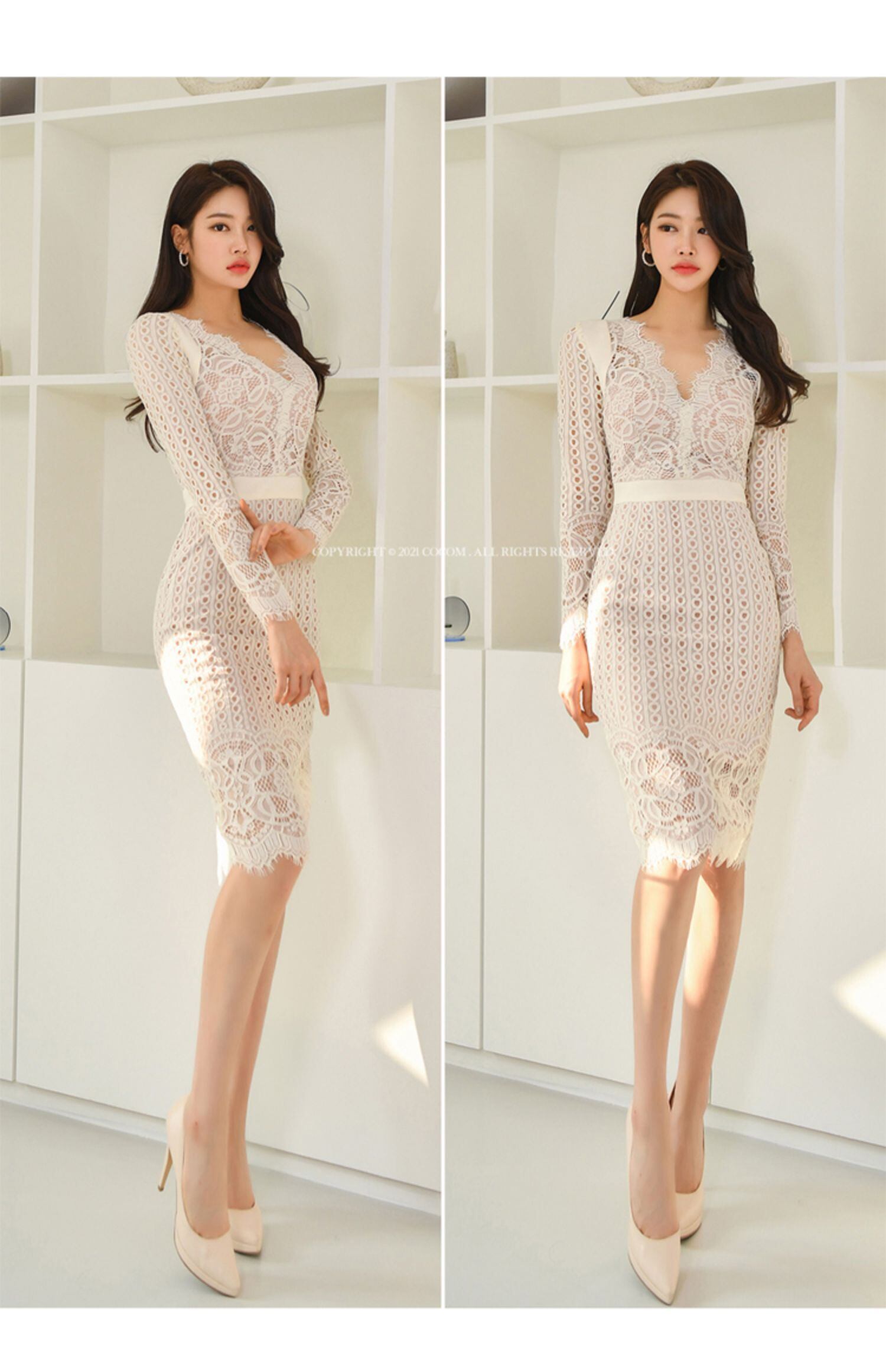 夏のセクシーなレースのパッチワーク鉛筆ボディコンドレス女性の中空アウトシースルーシースドレスOLVネックワークVestidos サマー 夏物 Rhc19817283645