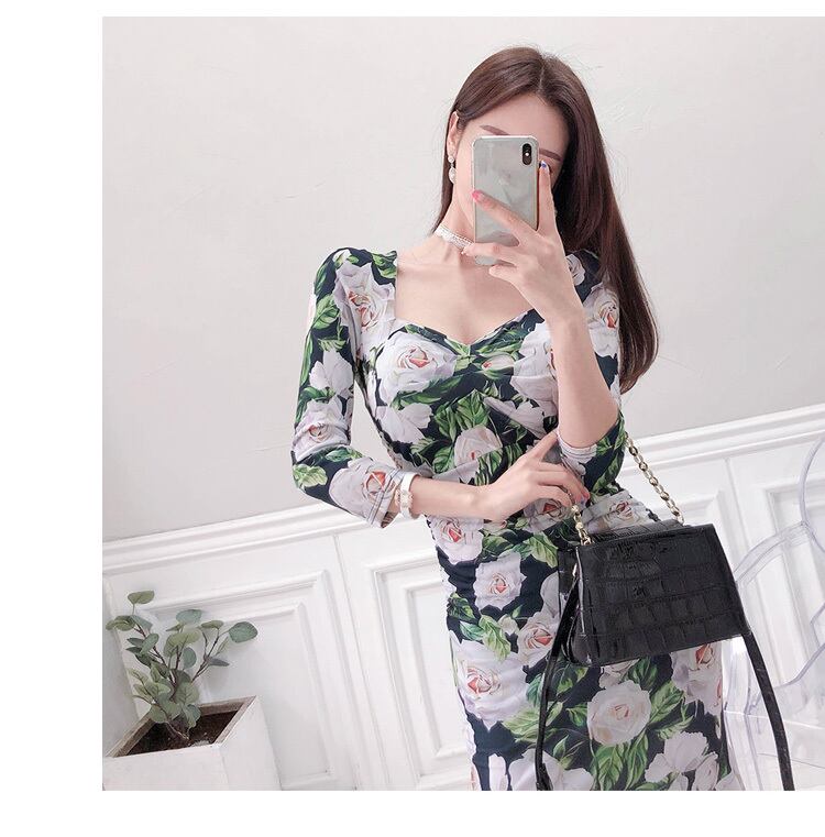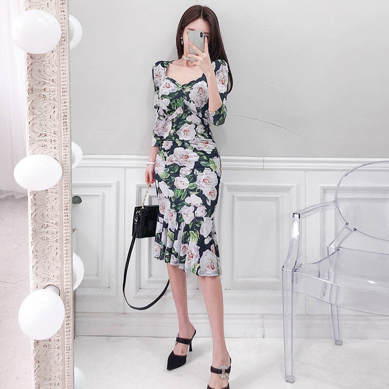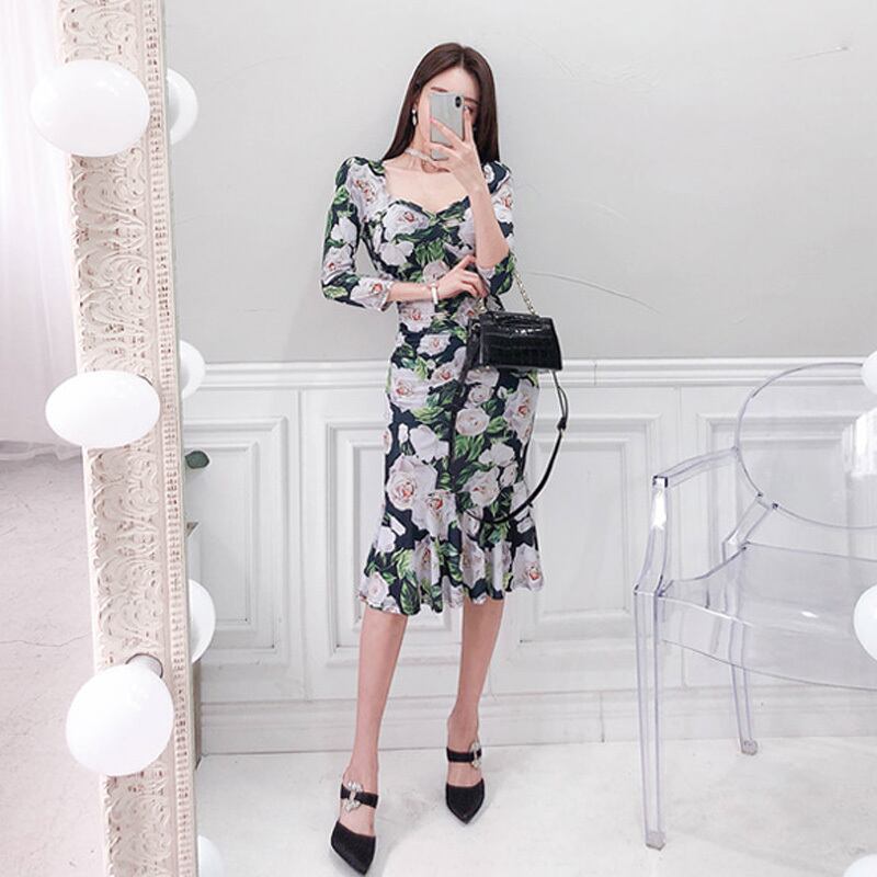 2020サマーランウェイフローラルフラワーラグジュアリーマーメイドパーティードレスレディVネックミディロングドレスVestidos 夏物 花柄 フラワーデザイン Rhc23087585460