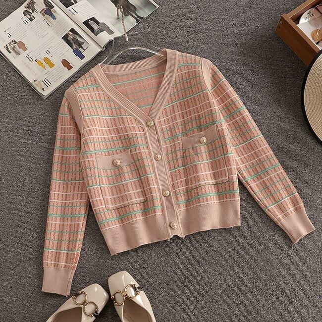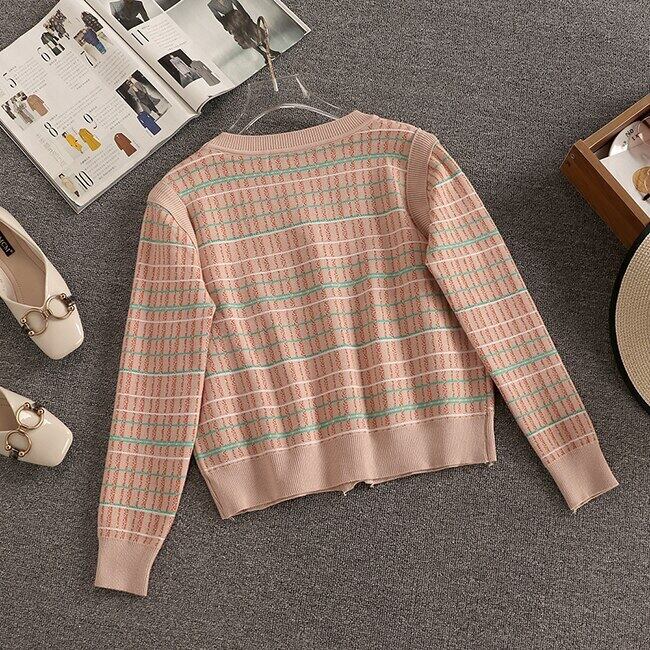 2021年秋冬Vネックニットポケットカーディガンコート+ウエストバッグヒップスカートストライプニットツーピーススーツレディースセット オータム 秋物 ウィンター 冬物 Rhc36742544154