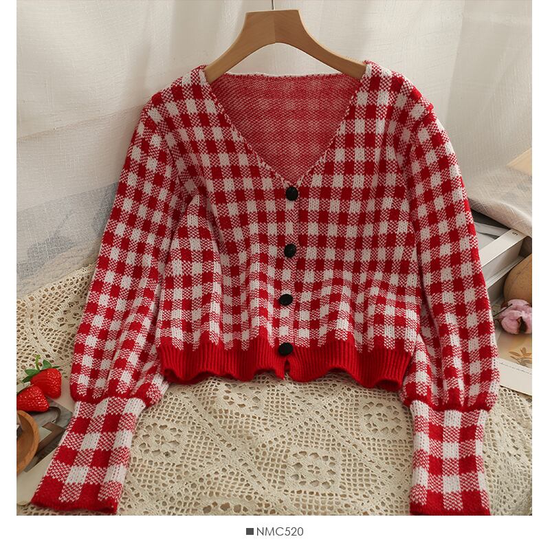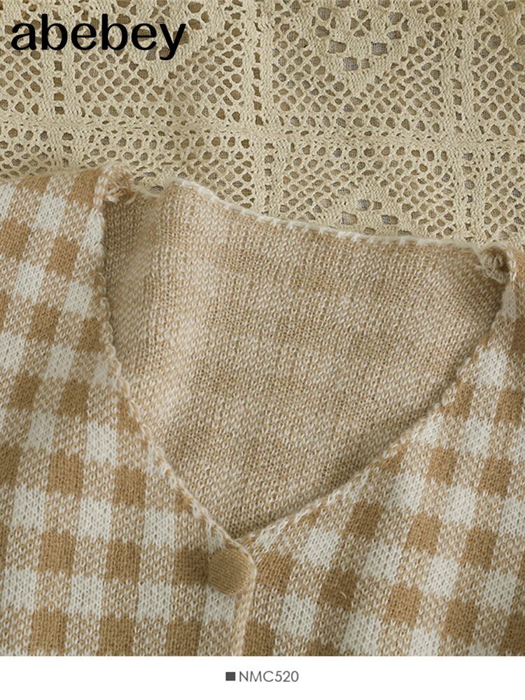 Vネックチェック柄長袖レディースセーター2022秋冬ショートニットカーディガンセーターWomesイングランドスタイルトップス ロング オータム 秋物 ウィンター 冬物 ヨーロピアン Abe98904832691