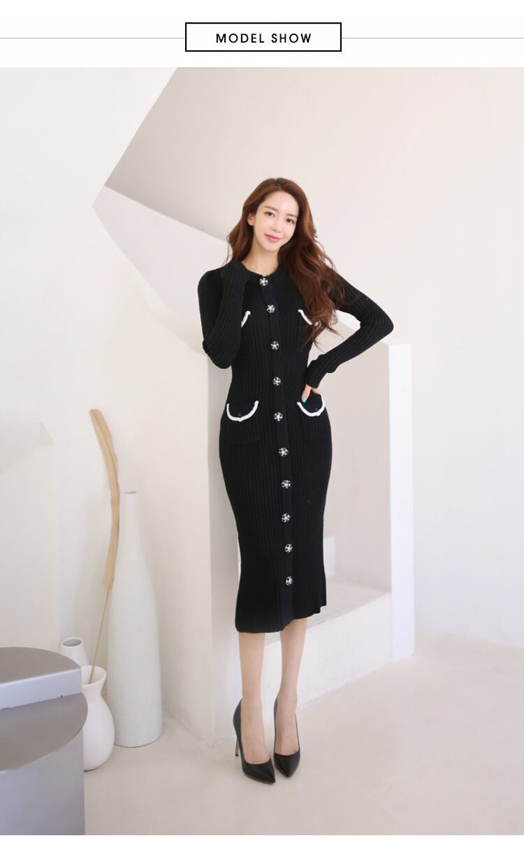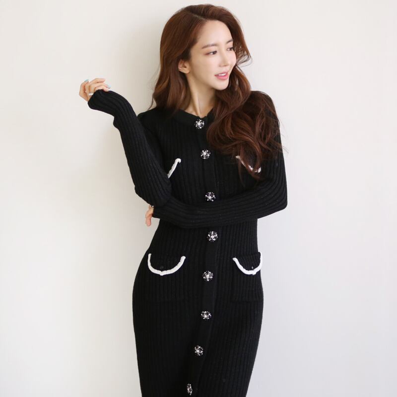 2021年女性のセーターニットドレス長袖Oネックボタンレディローブベスティドス春秋ホリデー ロング スプリング 春物 オータム 秋物 Rhc45315141097