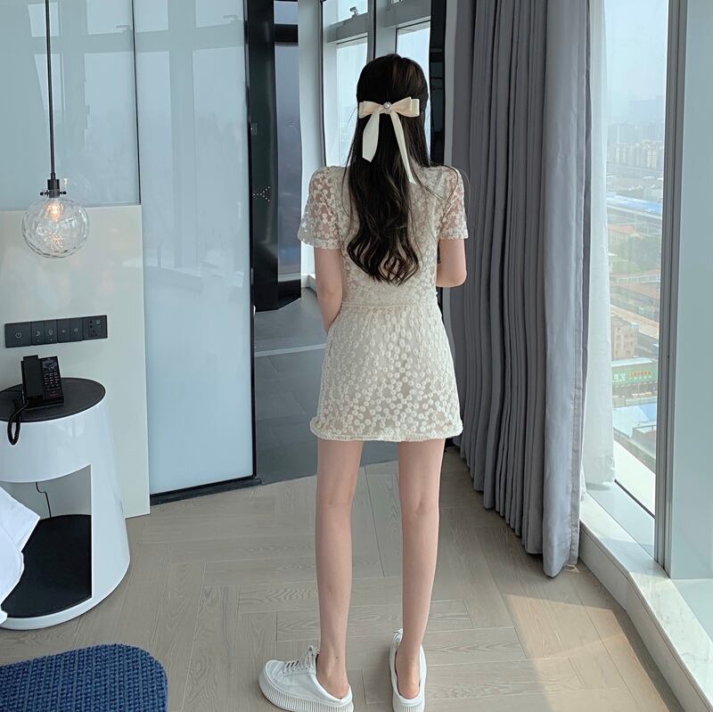 サマースウィートラペル刺繡ツーピースセットレディースレースフローラルポケットシャツ+ウエストミニスカートスーツ 刺繍 大人ガーリー キュート カジュアル 夏物 花柄 Rhc23745322580