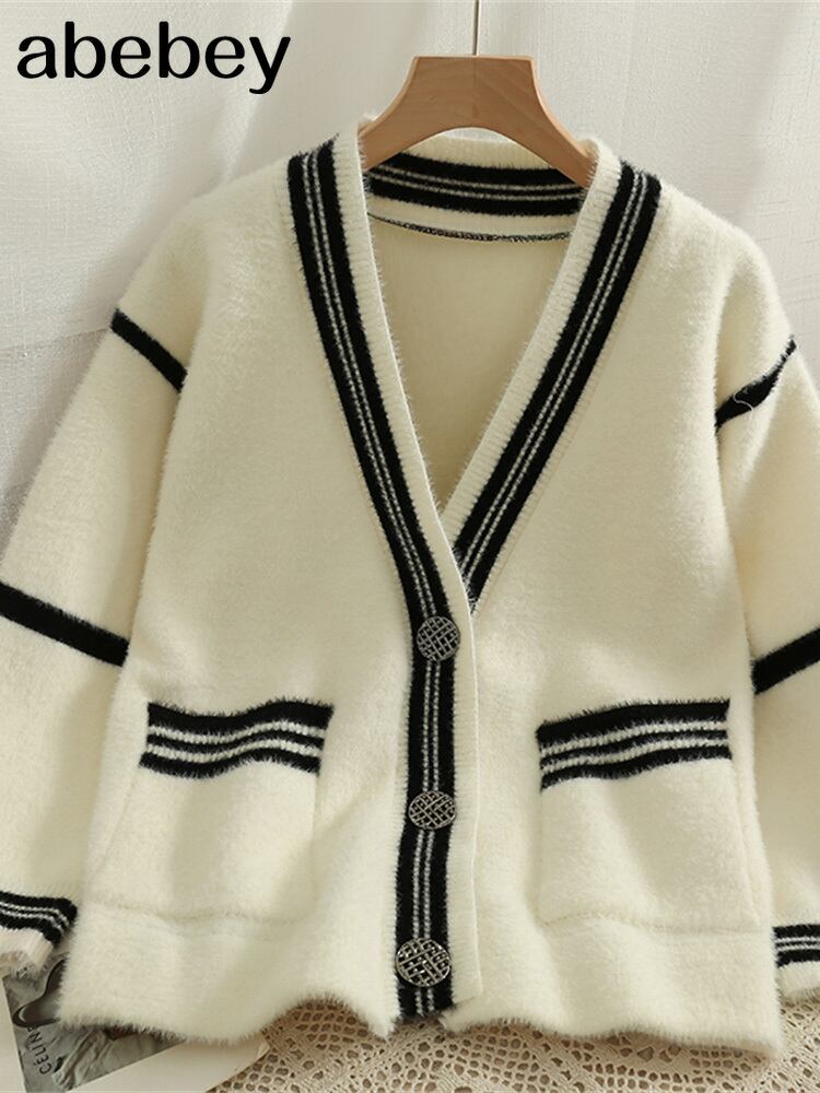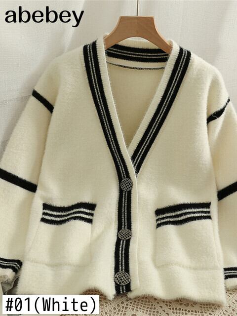 女性のカーディガンニットストライプセーター女性の冬の長袖Vネックニットコート ロング ウィンター 冬物 Abe38367257585