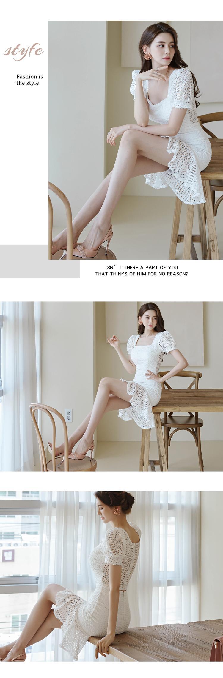 クラブセクシー2ピースセット女性ホワイトレースパフスリーブショートクロップドトップス+シャツウエストミニスカートスリム衣装夏 サマー 夏物 Rhc12484737515