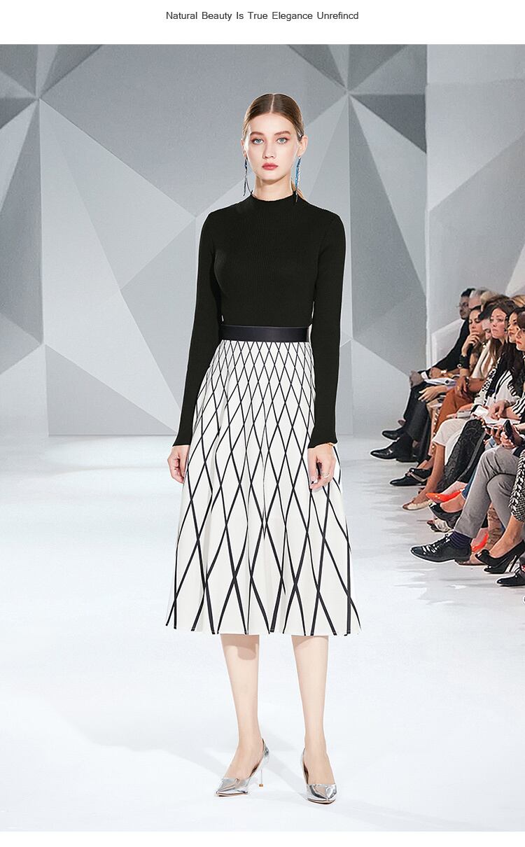 春秋ランウェイツーピースセットレディースニットセータートップ+チェック柄フラワープリントウエストロングスカートスーツセット スプリング 春物 オータム 秋物 フラワーデザイン Rhc34036522806