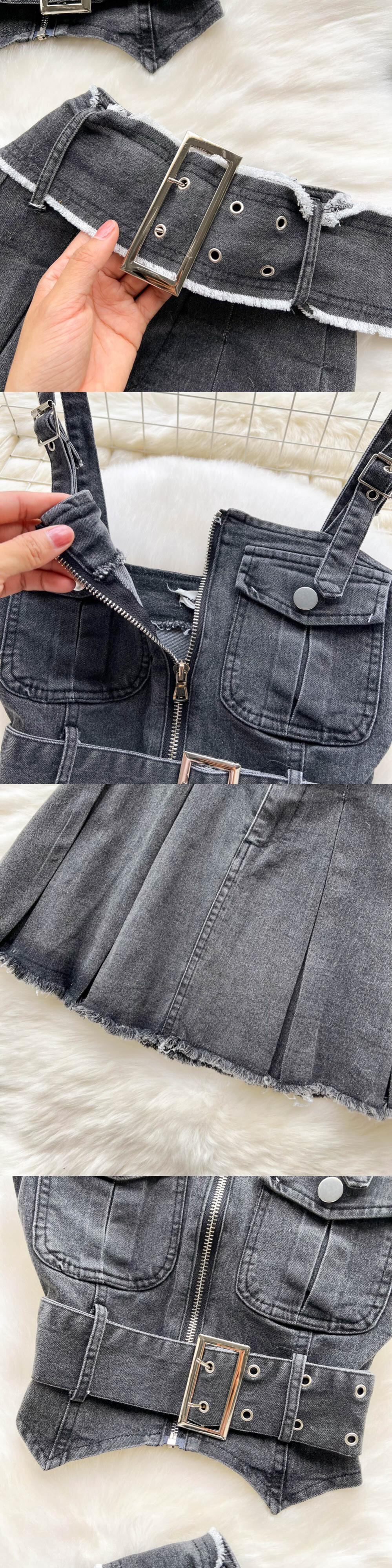 黒夏女性ツー2ピースセットセクシージーンズキャミストップ+ウエストショートデニムスカート衣装オフィスレディノースリーブスーツ ブラック サマー 夏物 会社 学校 通勤や通学にも Abe1788267079
