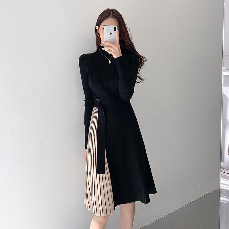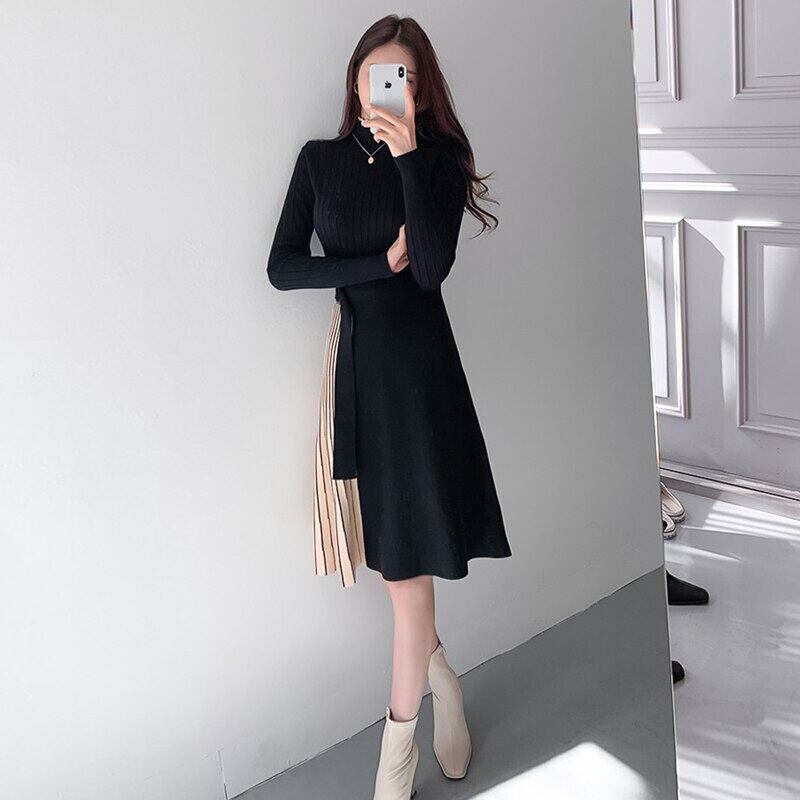 女性セータードレス長袖クルーネックニットドレス2020秋冬スリムスプライシングニットドレス ロング オータム 秋物 ウィンター 冬物 Rhc18517750534