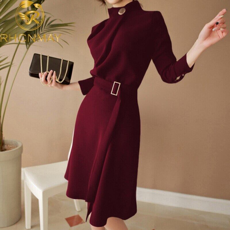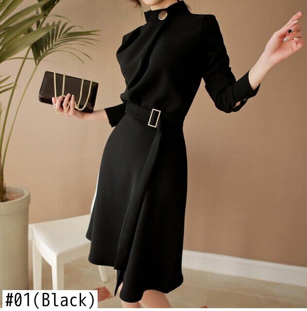 2020年春の女性ドレスオフィシャルレディサッシュスタンドカラーAラインドレス スプリング 春物 Rhc1413240064