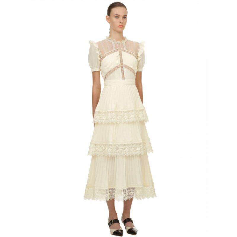 滑走路セルフポートレートドレス女性2020夏パッチワークフリルレースAラインスリムマキシミディドレス ラッフル サマー 夏物 Rhc42692895248