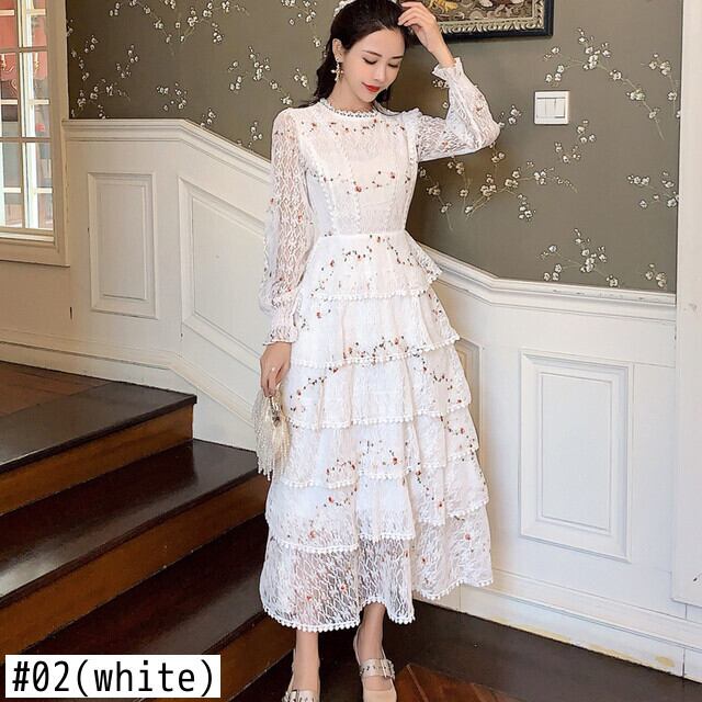 2020pringサマーピンクレース刺繍マキシドレスフルスリーブハイウエストフリルエレガントロングパーティードレス女性 ハイウェスト 夏物 Rhc72132017718