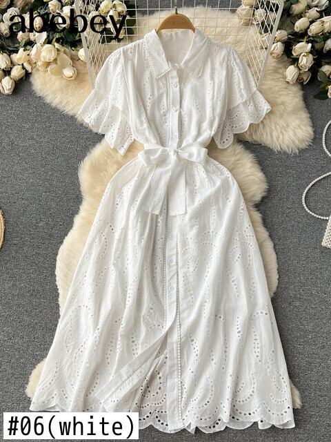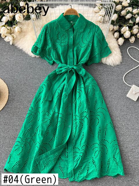 ホワイト/グリーン/レッド2022サマーレース刺繡ドレス女性半袖ドレスパーティービーチマキシロングドレス ショート ハーフスリーブ 刺繍 夏物 Abe82322213851