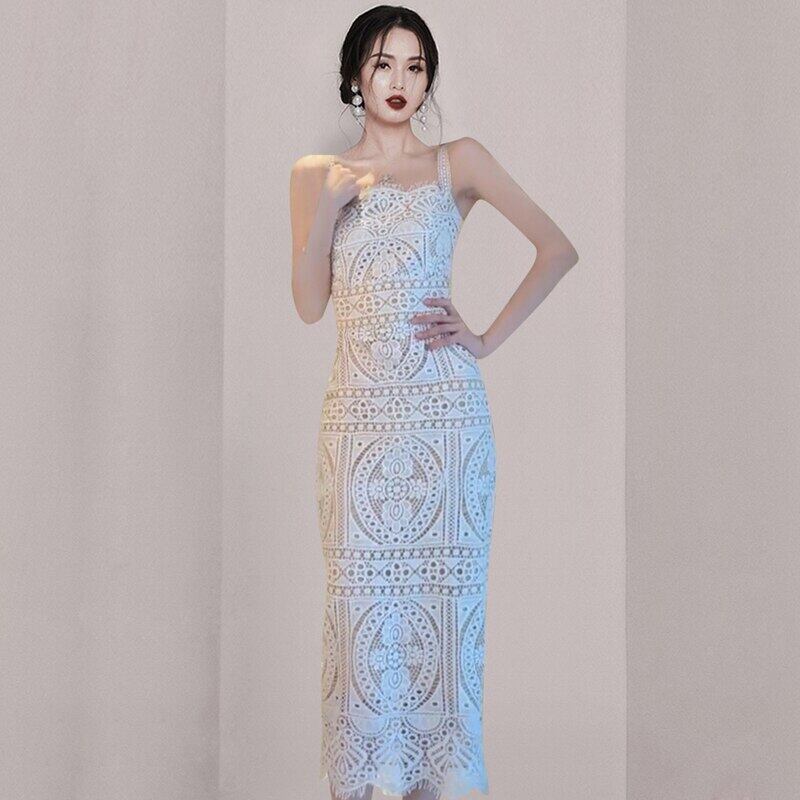 セクシーなレースの鉛筆のボディコンドレス女性の中空アウトシンプルなシースドレスOLワークホワイトミディドレスVestidos Rhc40341563383