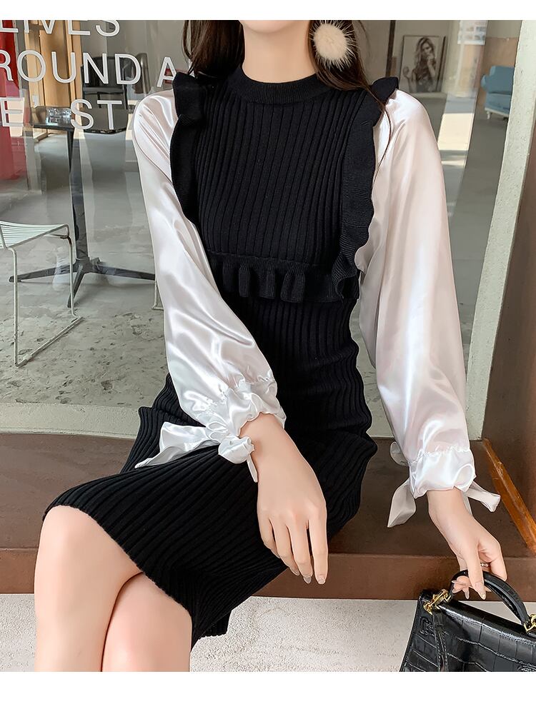 2020年春秋スリム気質ロータスリーフエッジ黒と白のスプライシングビショップスリーブフレヌラムドレス ホワイト ブラック スプリング 春物 オータム 秋物 Rhc51559154504