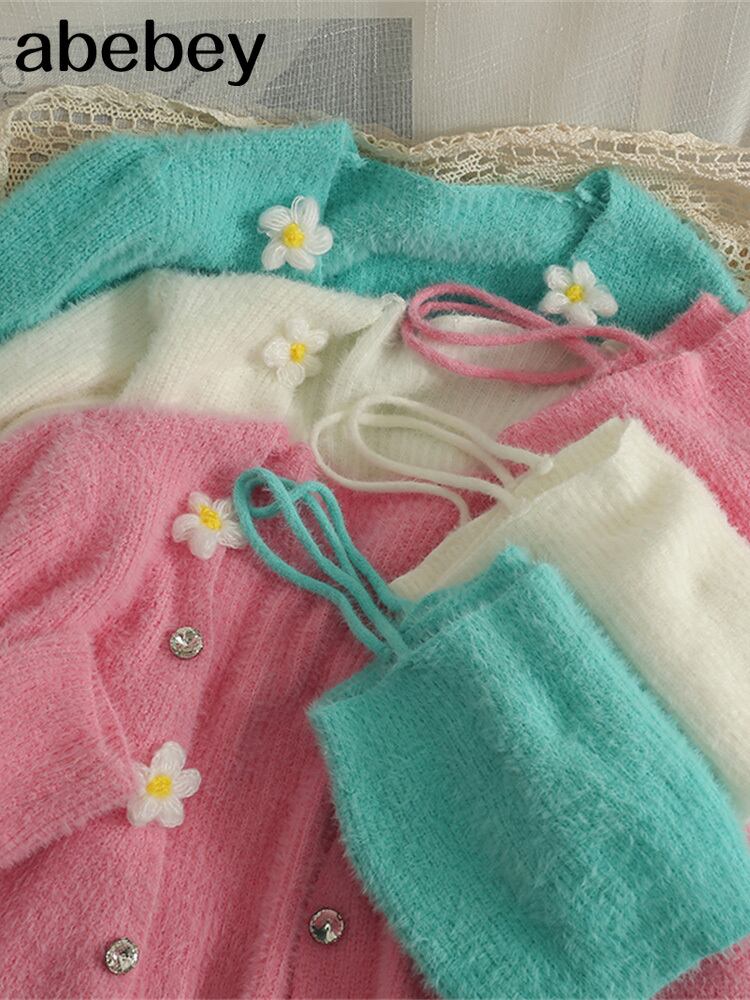 スタイルツーピースセットカーディガン女性セクシーな秋のキャンディーカラー長袖リブ編みニットクロップドセーターとお揃いのベスト ロング オータム 秋物 Abe75360677754