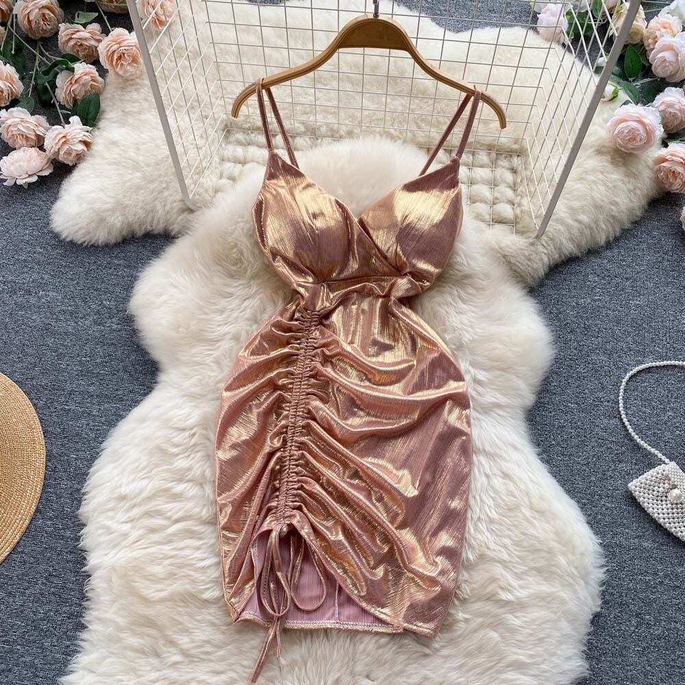 スパゲッティストラップバックレスサテンドレスセクシーカットアウトミニサマードレス女性2022カウルネックパーティードレス 夏物 Abe48912262982