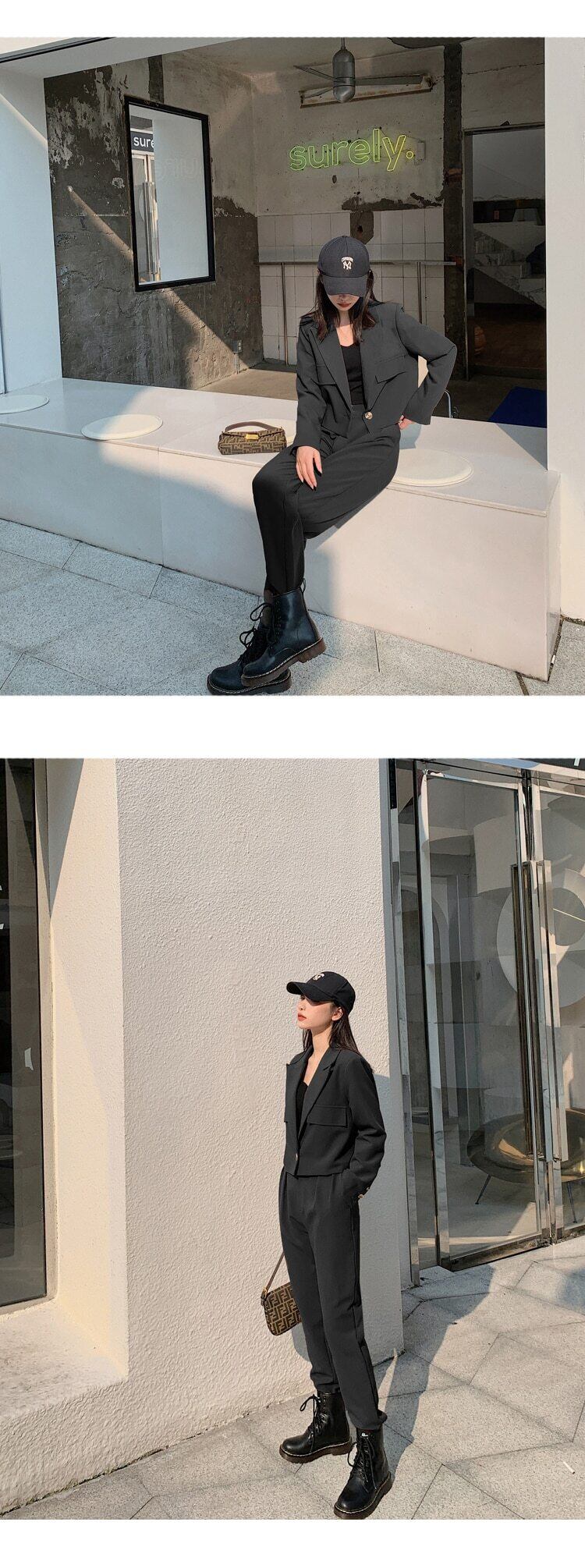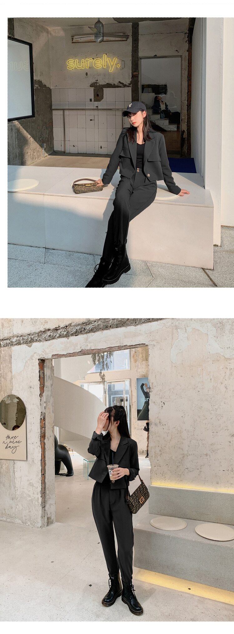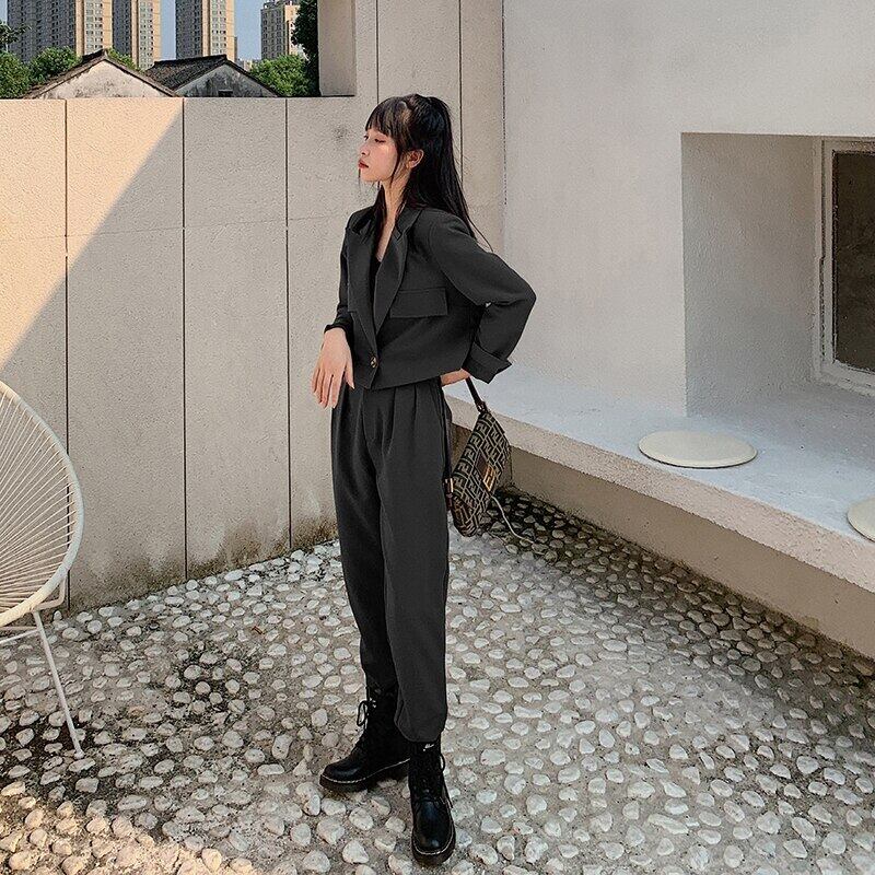 2020年秋の女性ハーレムパンツスーツ2点セットショートブレザージャケット&パンツオフィススーツ オータム 秋物 会社 学校 通勤や通学にも Rhc83494907674
