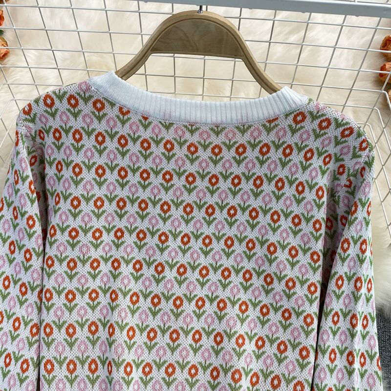 秋のニットトップススウィートジャカードセーター長袖Oネックフラワープリントかわいいショートカーディガン ロング 大人ガーリー キュート カジュアル オータム 秋物 フラワーデザイン Rhc23733831380