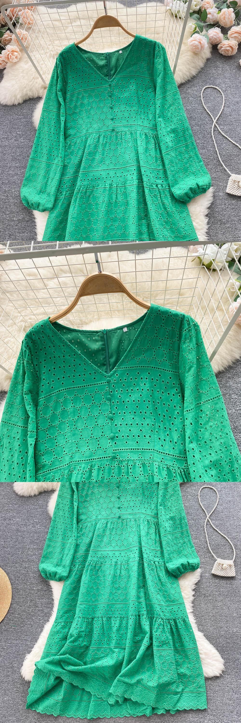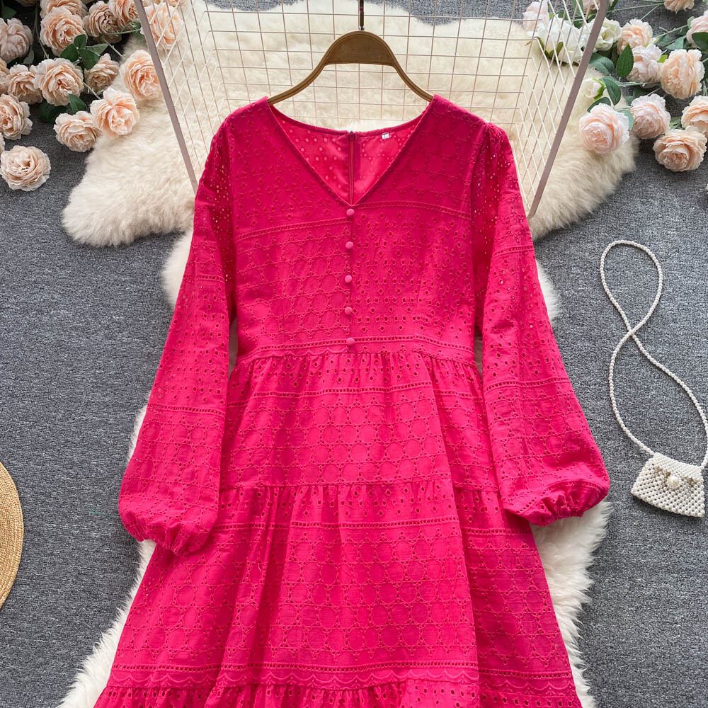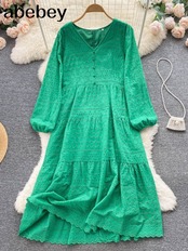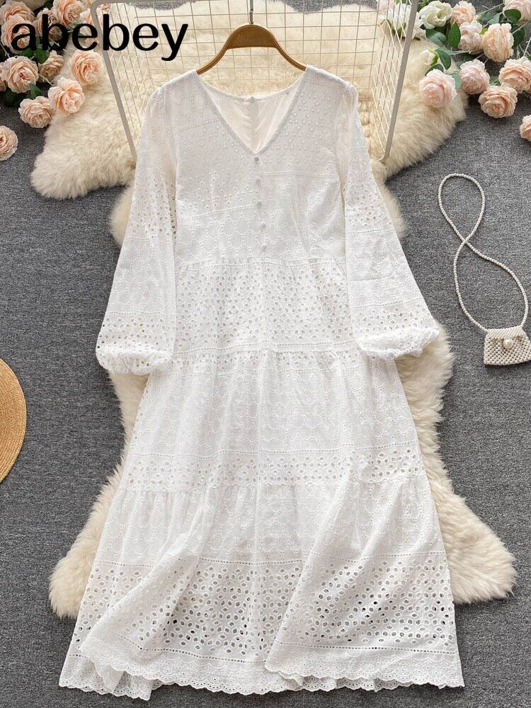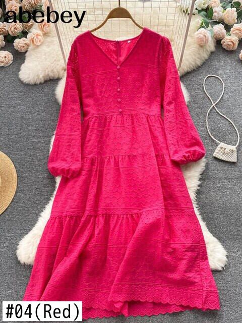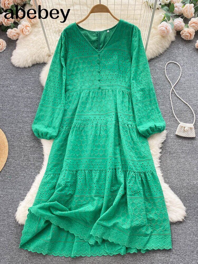 白/緑/赤2022年秋のレース刺繡ドレス女性長袖ドレスパーティービーチマキシロングドレス ホワイト レッド 刺繍 オータム 秋物 グリーン Abe16663787432
