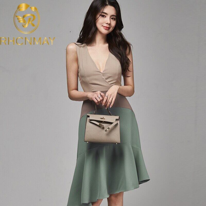 女性マーメイドドレス2020夏パッチワークVネック不規則なドレスノースリーブパーティーVestidos サマー 夏物 Rhc95137251059
