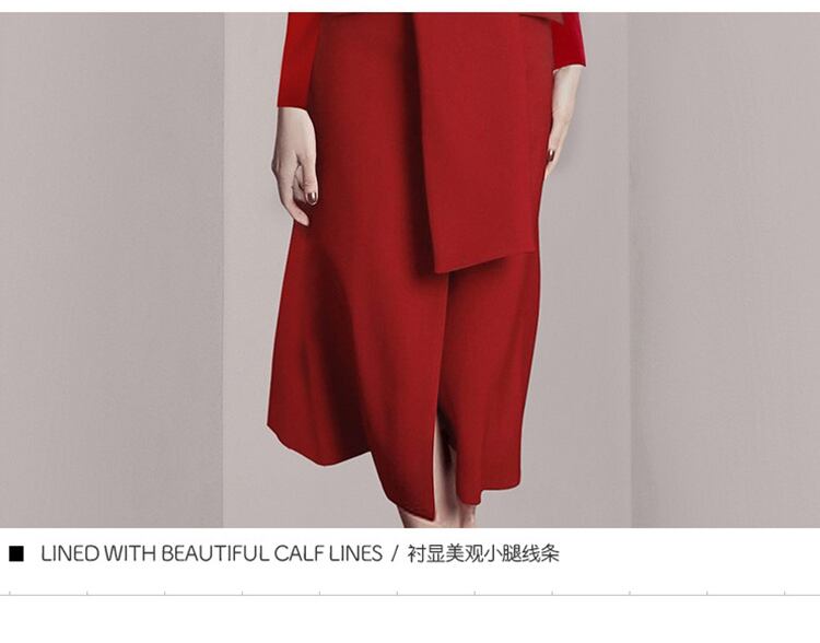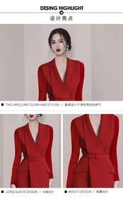 滑走路の女性の赤いドレス春の長袖ベルトスリムブレザードレスセクシーなVネックオフィスパーティーロングドレス レッド スプリング 春物 ハーネス 会社 学校 通勤や通学にも Rhc61019255011