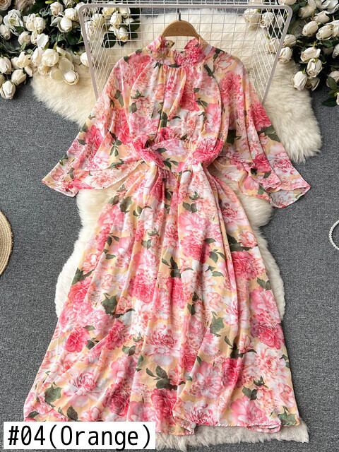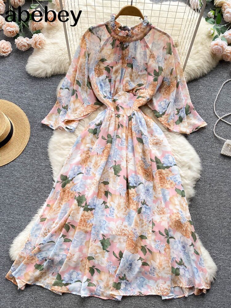 ボヘミアン女性花柄ロングドレスセクシーボウカラー半袖ウエストフリルビーチバケーションVestidosマキシローブ ショート リボン ハーフスリーブ プリント Abe70791982193