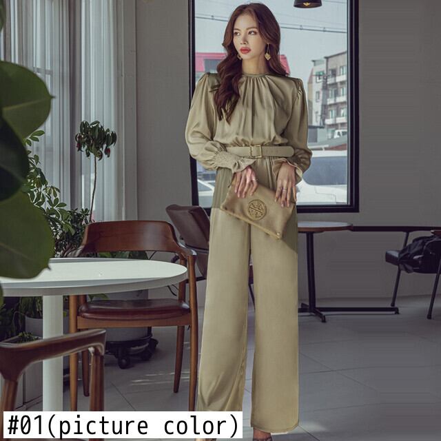 ジャンプスーツロングパンツ女性ロンパース長袖Oネックサマーワイドレッグジャンプスーツベルト付きセクシークラブパーティー 夏物 ハーネス ワイドパンツ Rhc83585518378