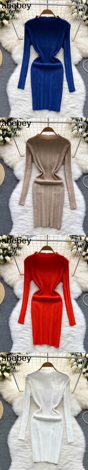 ソリッド女性ニットドレス長袖シース2022年夏Oネックスリム伸縮性優しいミディボディコンドレス ロング エラスティック サマー 夏物 ソリッドカラー Abe47620035052