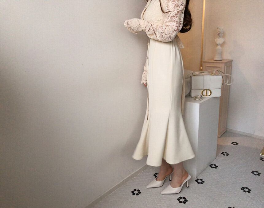 シックな女性のロングドレス早春シックな気質Vネックレースステッチパフスリーブウエスト薄いマーメイドスカート スプリング 春物 Rhc32690428924