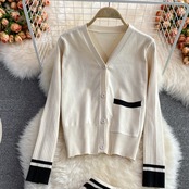 女性2021ニットトラックスーツセーターショーツ2個セット長袖Vネックカーディガン+ワイドレッグミニショーツスーツ ロング ブルマー ワイドパンツ Rhc40600836725