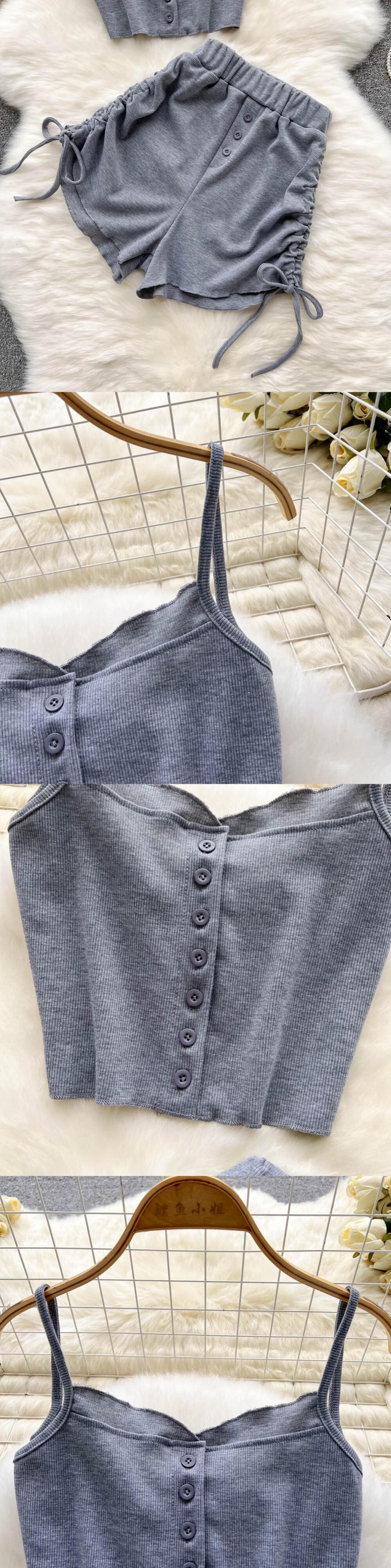 女性2022年春夏スーツ無地2ピースセットセクシースリムチューブトップとウエストショーツトラックスーツショーツとベスト スプリング 春物 サマー 夏物 ブルマー ソリッドカラー Abe47963899079