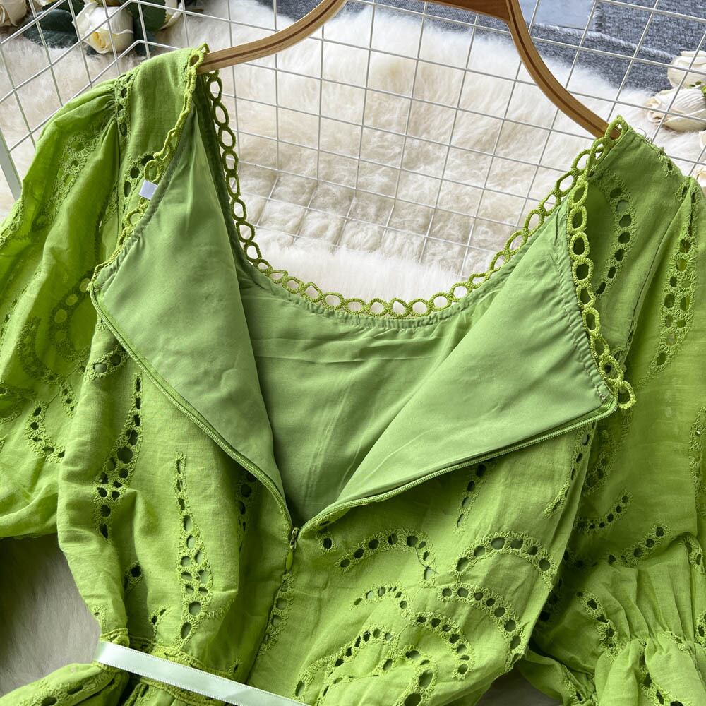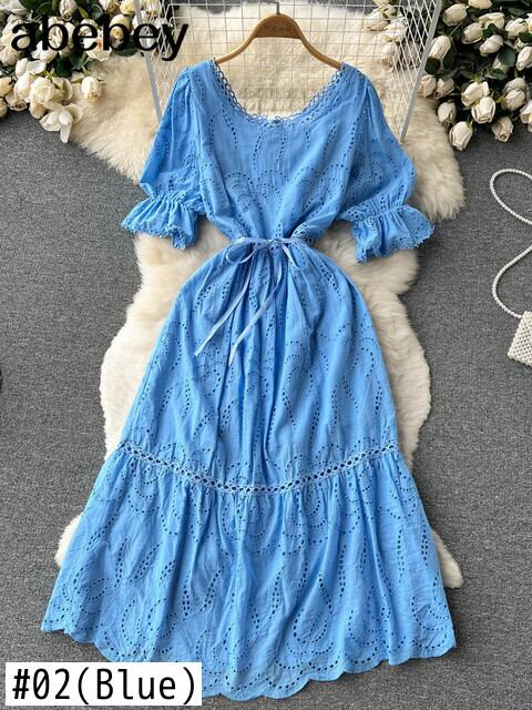 ホワイト/グリーン/ブルー2022サマーレース刺繡ドレス女性半袖ドレスパーティービーチマキシロングドレス ショート ハーフスリーブ 刺繍 夏物 Abe45977853263