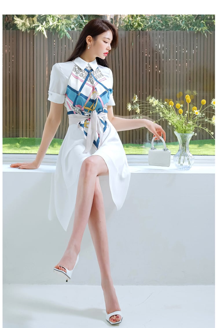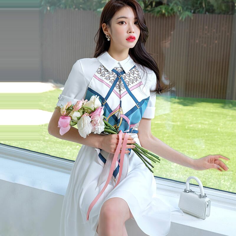 プリントシャツドレスレディース春ミドル丈スリムシングルブレストワークVestidoesセクシーなOLドレス スプリング 春物 会社 学校 通勤や通学にも Rhc97749377188