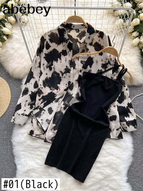 サマーセットレディース長袖絞り染めゴシックシャツ++セクシーストラップドレスボディコンツーピーススーツ ロング 夏物 Abe99737538832