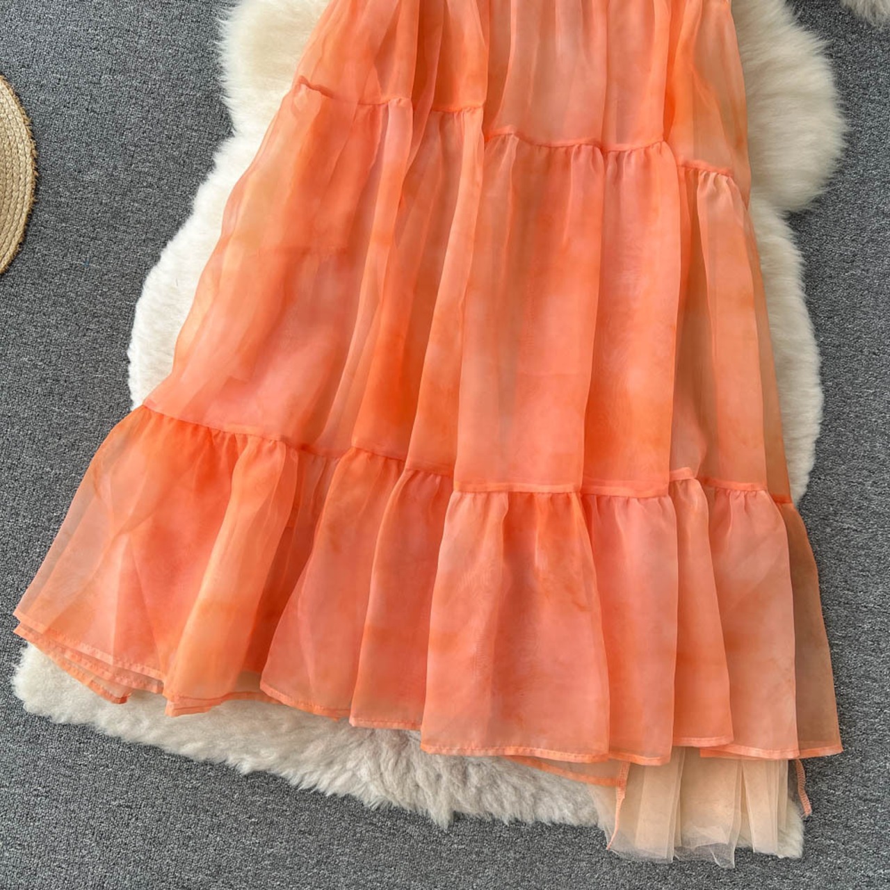 夏のセクシーな絞り染めスパゲッティストラップミディドレス女性オフショルダー半袖バケーションビーチローブ ショート ハーフスリーブ サマー 夏物 Abe99864849453