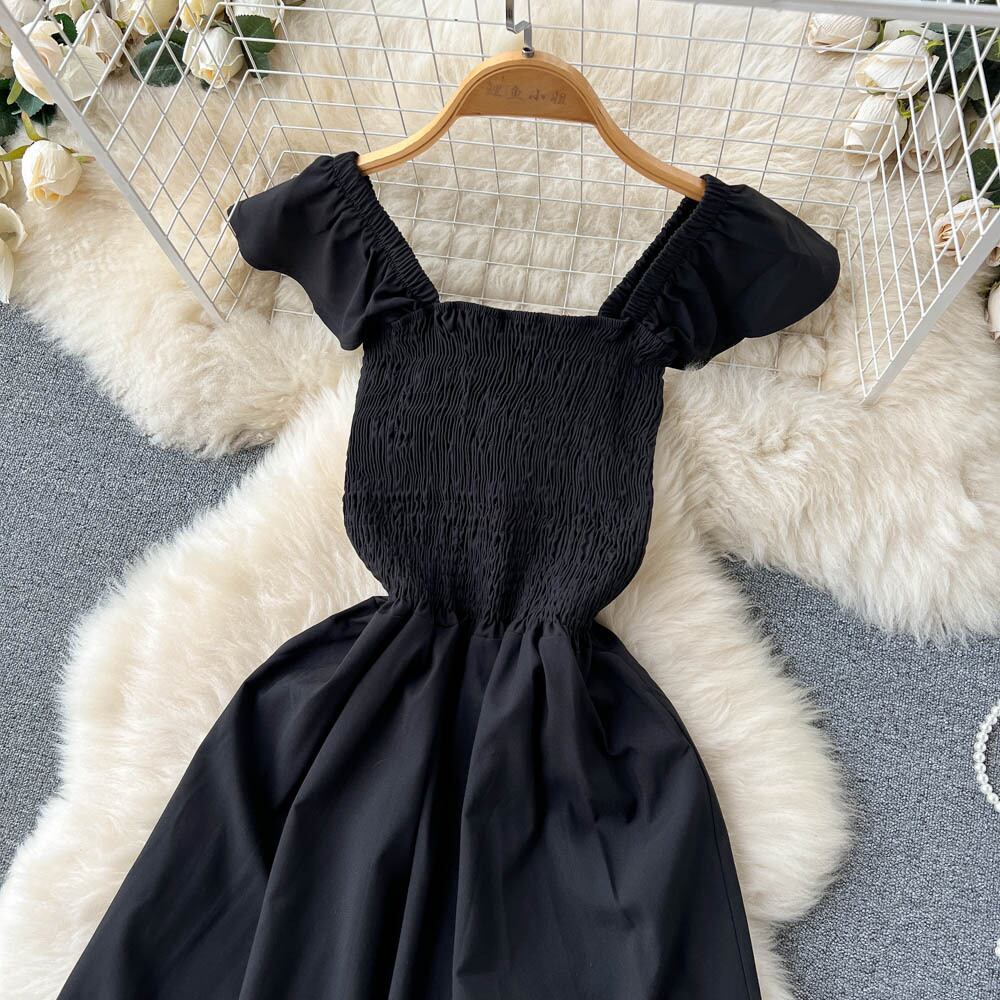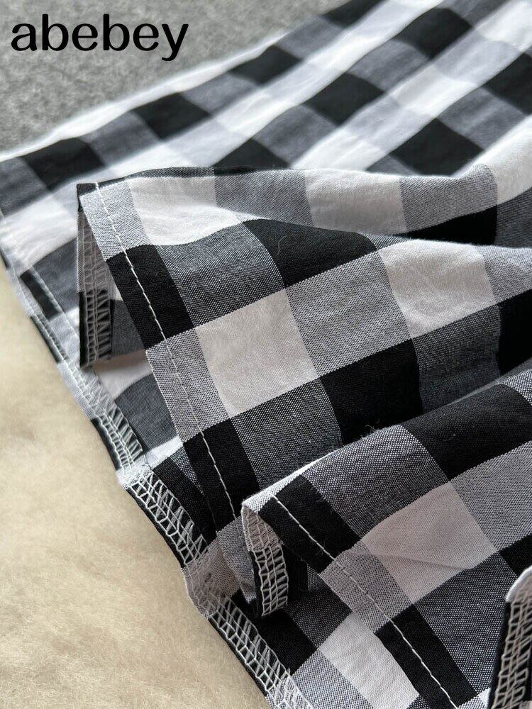 フライングスリーブチェック柄ドレス女性夏のプリーツラインの服2022シックな薄い気質スクエアカラードレス サマー 夏物 Aライン スクウェア Abe93141532801