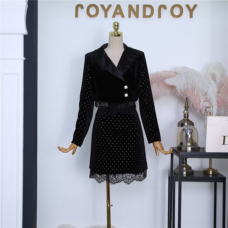 秋のセレブ女性セットクロップドショートトップス&ミニボディコンスカート水玉ベルベット女性2個セット衣装ストリート オータム 秋物 Rhc8965446322