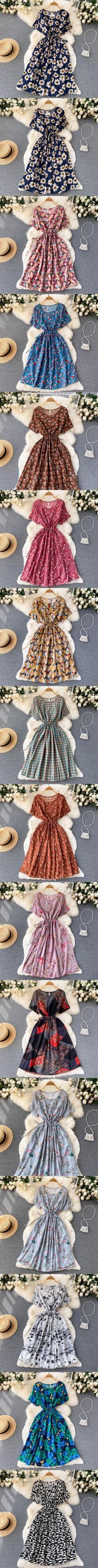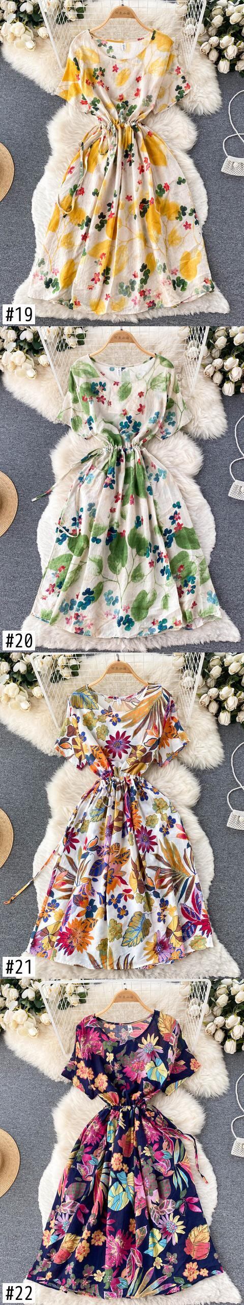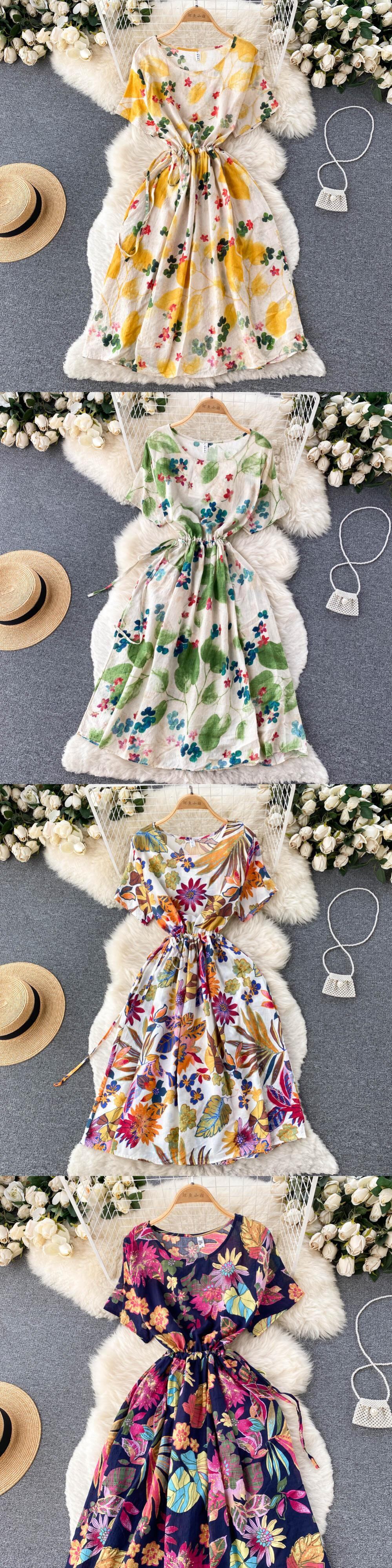 緑の夏の女性のドレスボヘミアンフローラルプリントホリデーローブVestidosOネック半袖ミディサンドレス ショート ハーフスリーブ サマー 夏物 花柄 グリーン Abe77216230280