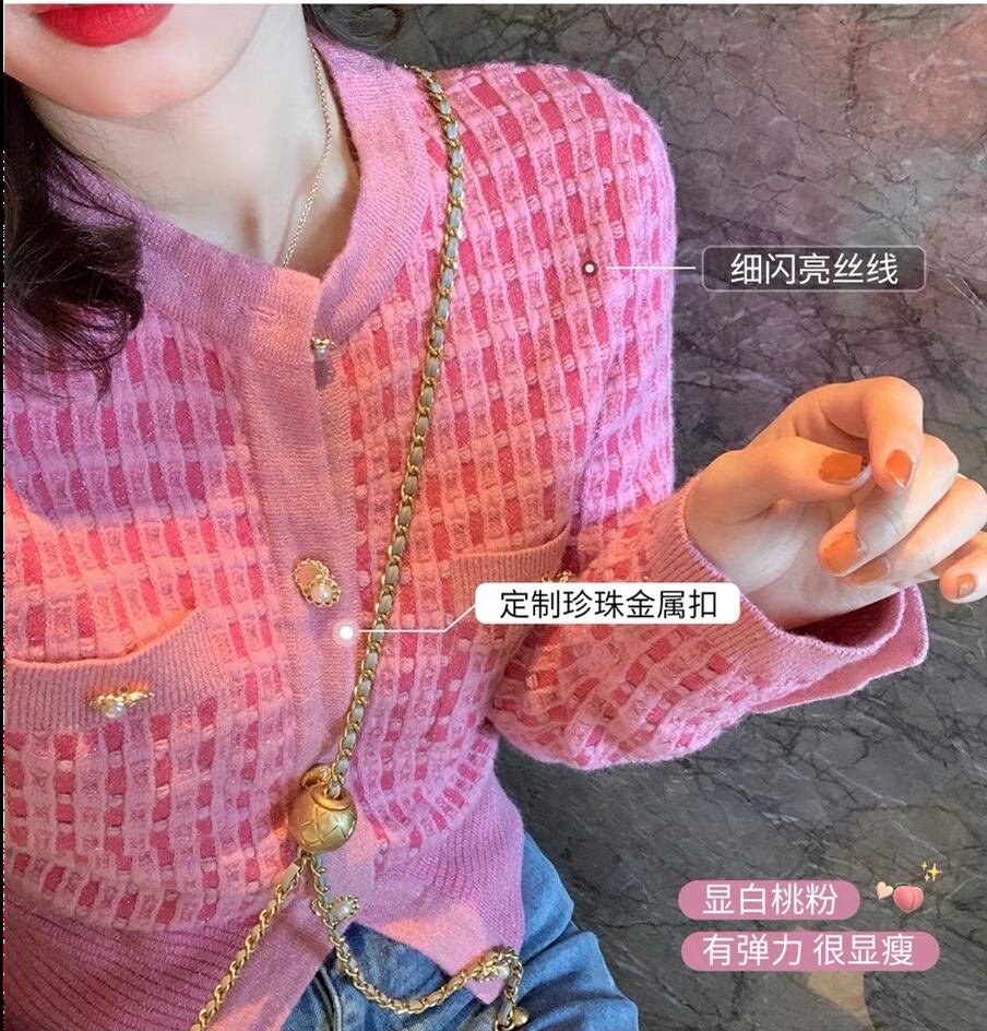 Oネックパールボタン長袖女性ニットカーディガンシャイニーシルクスレッドセーター2021年秋シックなスウィートジャケット ロング 大人ガーリー キュート カジュアル 真珠 Rhc5175307343