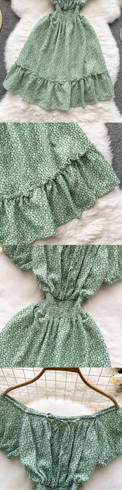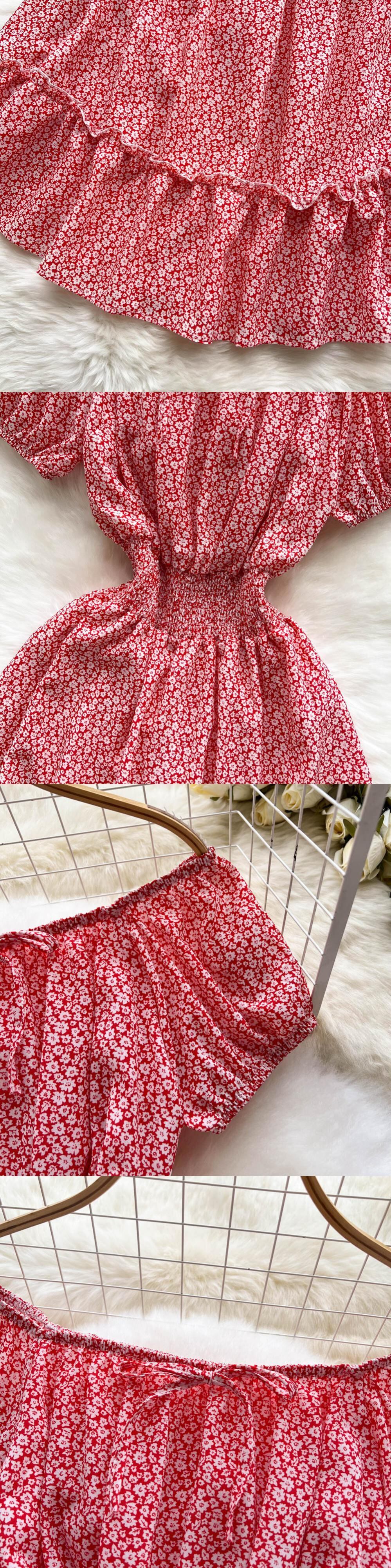 夏のフレンチフローラルドレス女性の甘いセクシーなスラッシュネックオフショルダーAラインドレス自由奔放に生きるプリントバケーションビーチサンドレス 大人ガーリー スウィート キュート カジュアル サマー 夏物 花柄 Abe13812552094
