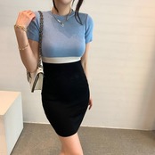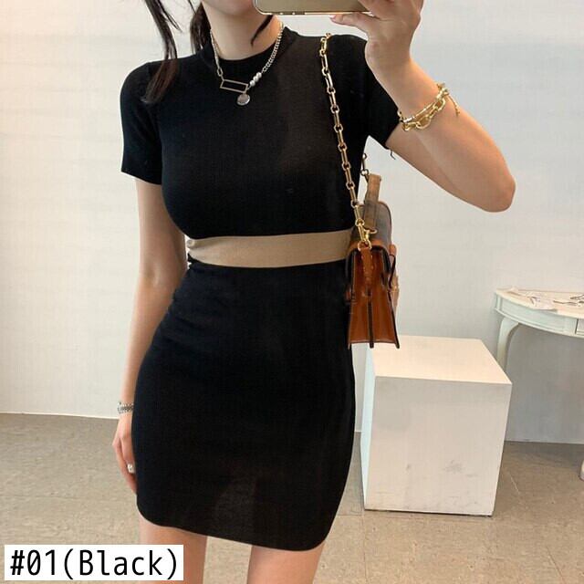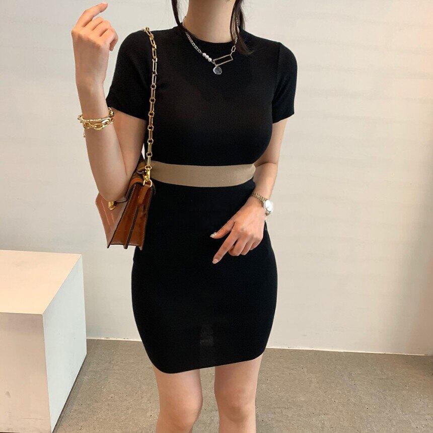 2021年夏のセクシーなニットミニドレス女性半袖OネックパッチワークスリムペンシルドレスVestidos ショート ハーフスリーブ サマー 夏物 Rhc21863482323