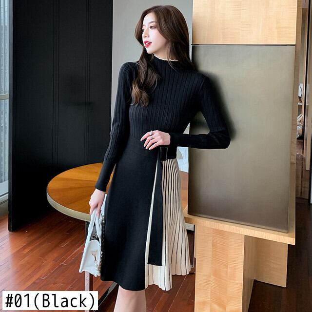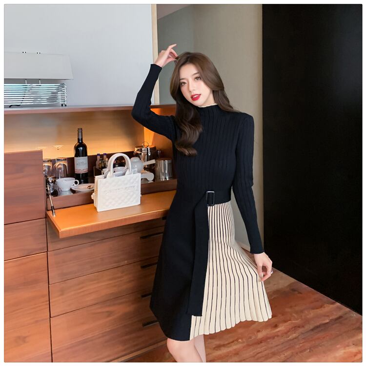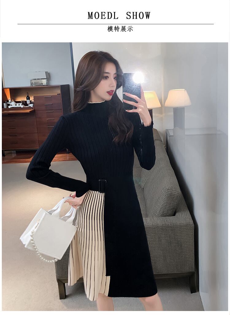 2021年冬の伸縮性ニットドレス女性カラーマッチングレースアップセータードレススリムワークオフィスVestidos エラスティック ウィンター 冬物 会社 学校 通勤や通学にも Rhc22169886491