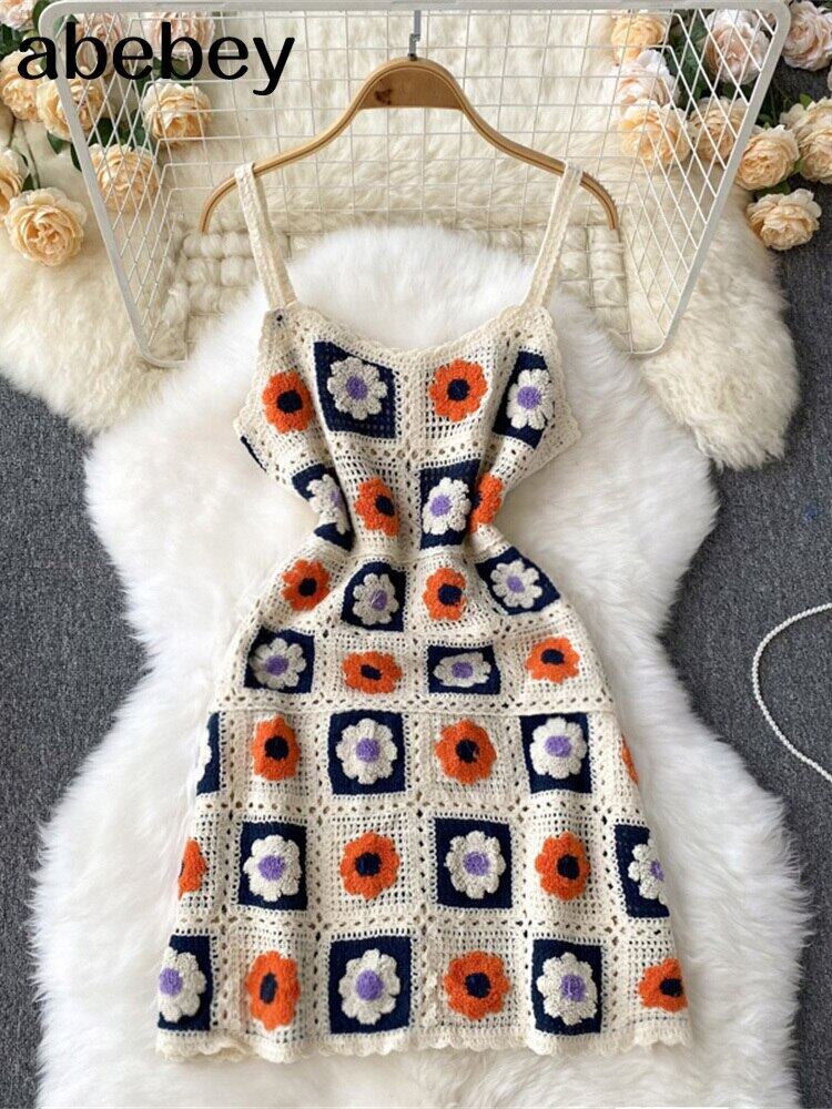 かぎ針編みのドレスニットカットアウトドレスJurkDamesビーチドレス女性2022ストラップノースリーブVestidos Abe21935967644
