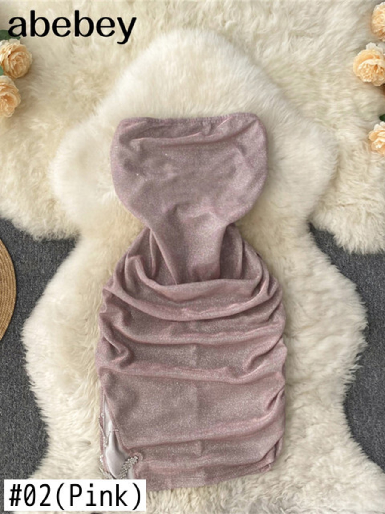 セクシーなストラップレスオフショルダーストライププリントボディコンミニドレス女性パンクグランジスリム夏原宿ロリータ服 かわいい サマー 夏物 Abe69125339319